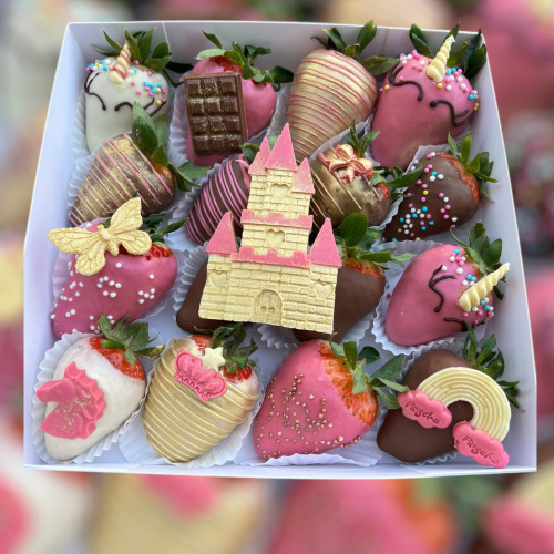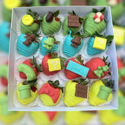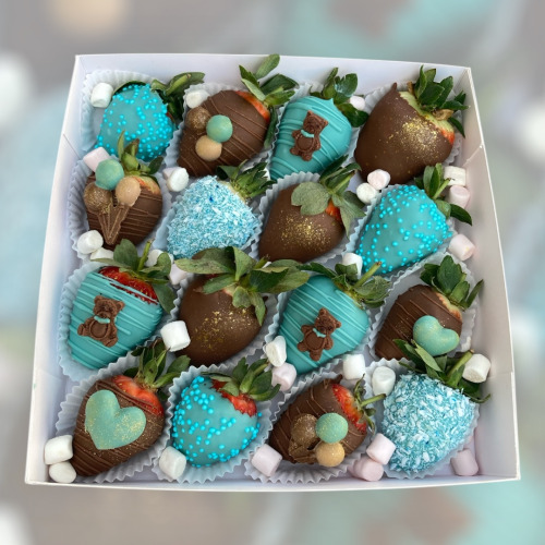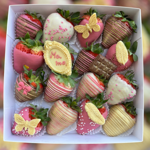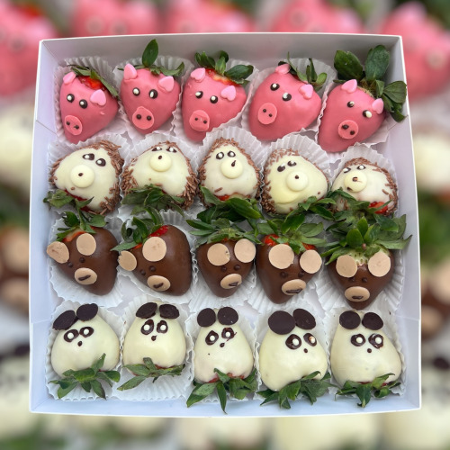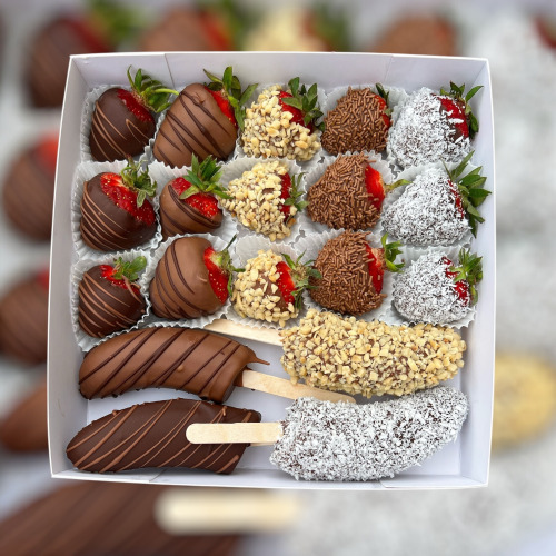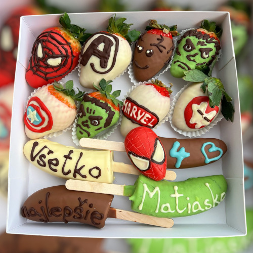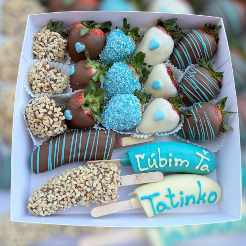 V bonboniérke je 16-20 ks jahôd a čokoládovými mini mackami.