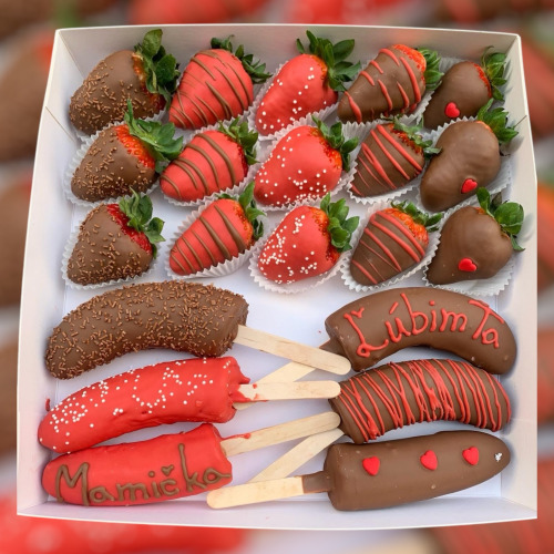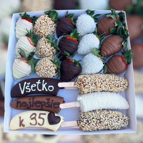 V bonboniérke je 25-30 ks jahôd, súčasťou bonboniéry je aj n...