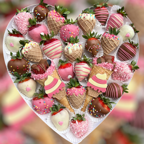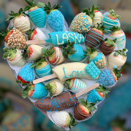 Obsahuje 22-27 ks jahôd a nápis "MAMI LUBIM TA".