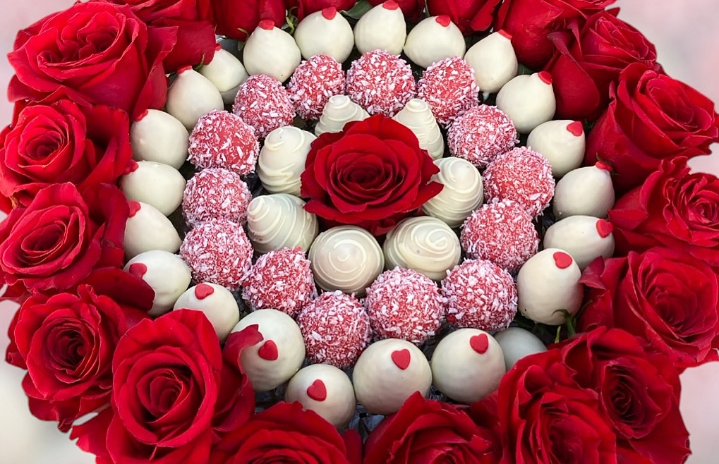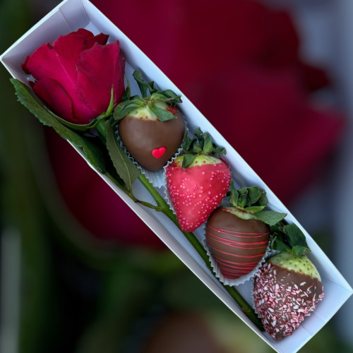 V bonboniérke je 8-10 ks jahôd a srdiečko s nápisom Ľúbim Ťa...